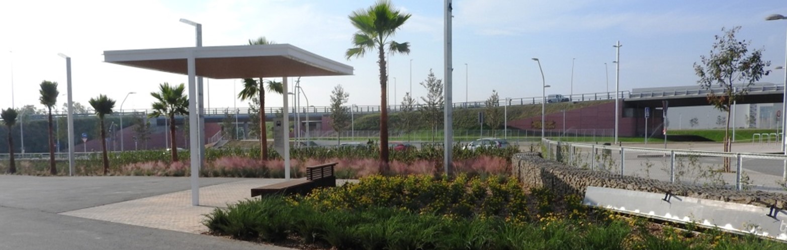Descripció: Treballs de plantació de la totalitat de l’arbrat, palmeres, arbustives, gespa i flor de temporada. Zona daparcament amb paviment mixt tipus via verda.