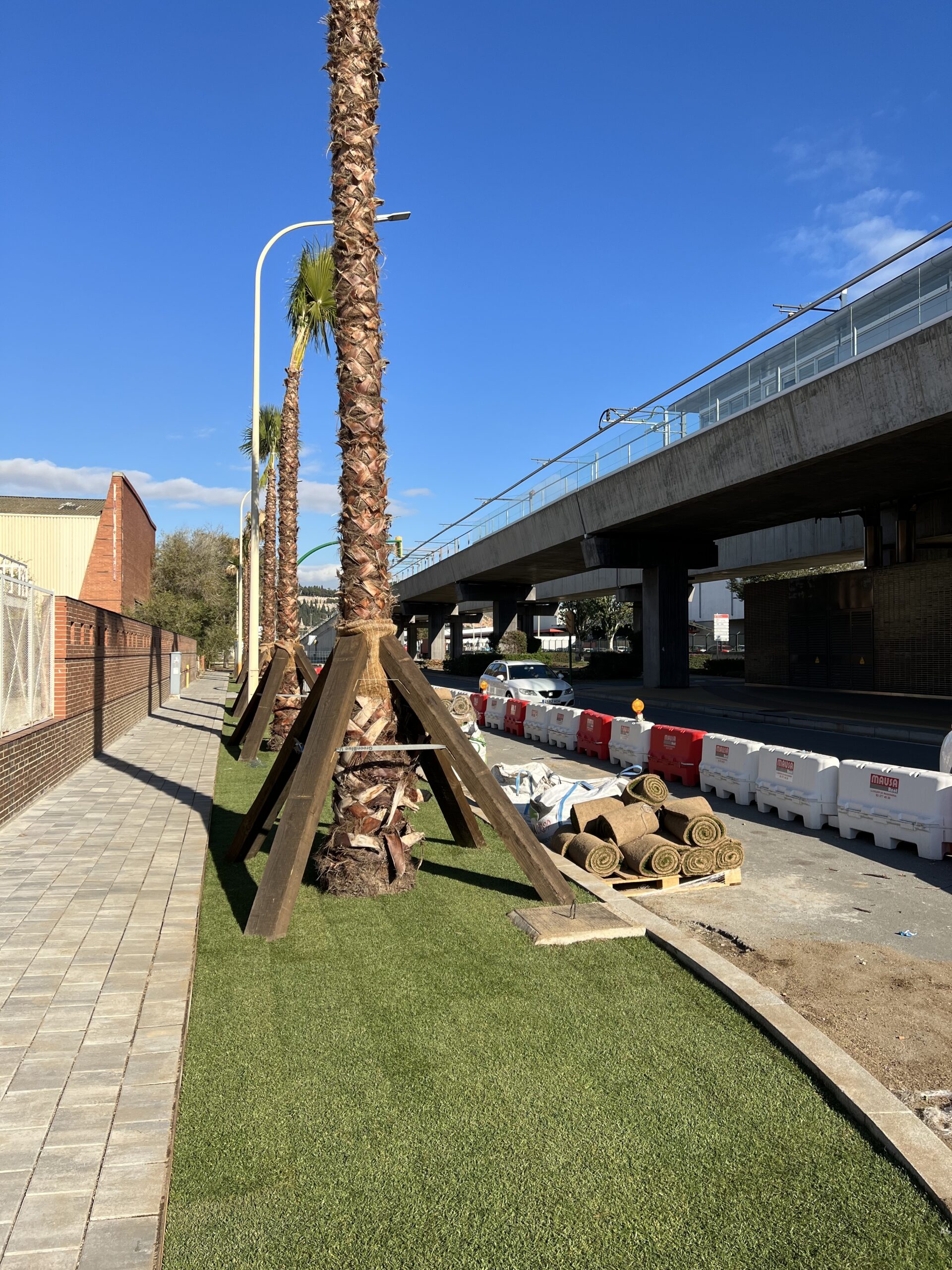 Descripció: Restauració Av Països Catalans. Creació de dos parterres lineals per a la plantació d’arbrat i parterre central per a arbustiva. Sistema de reg per degoteig telegestionat i sistema de reg radicular. Col·locació de troncs secs per millorar la biodiversitat. Acabat amb grava calcaria de riu.